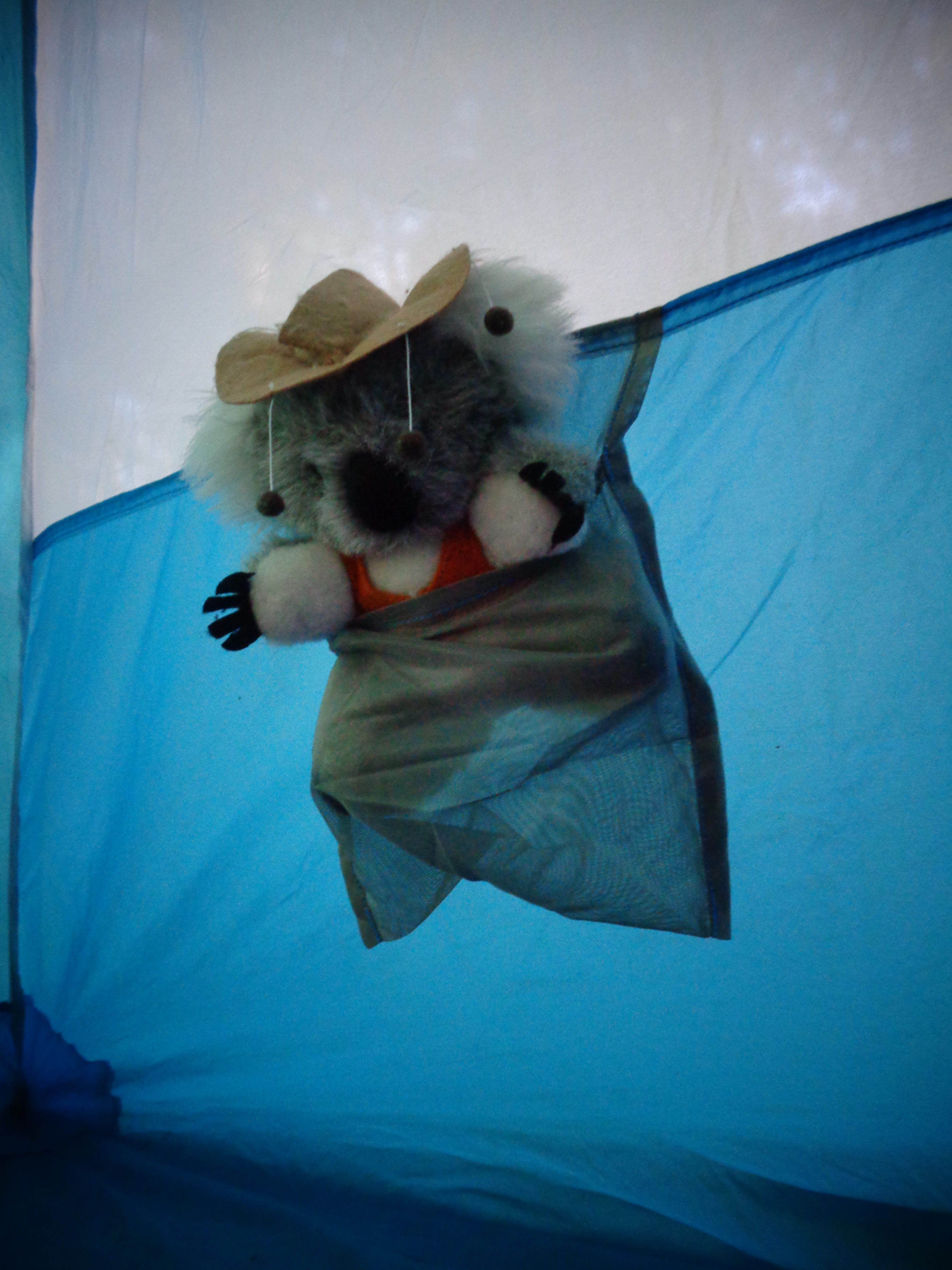 Nothing says “comfort” like your own bunk in the tent. A.B. enjoys a well-deserved nap after supervising the camping set up.