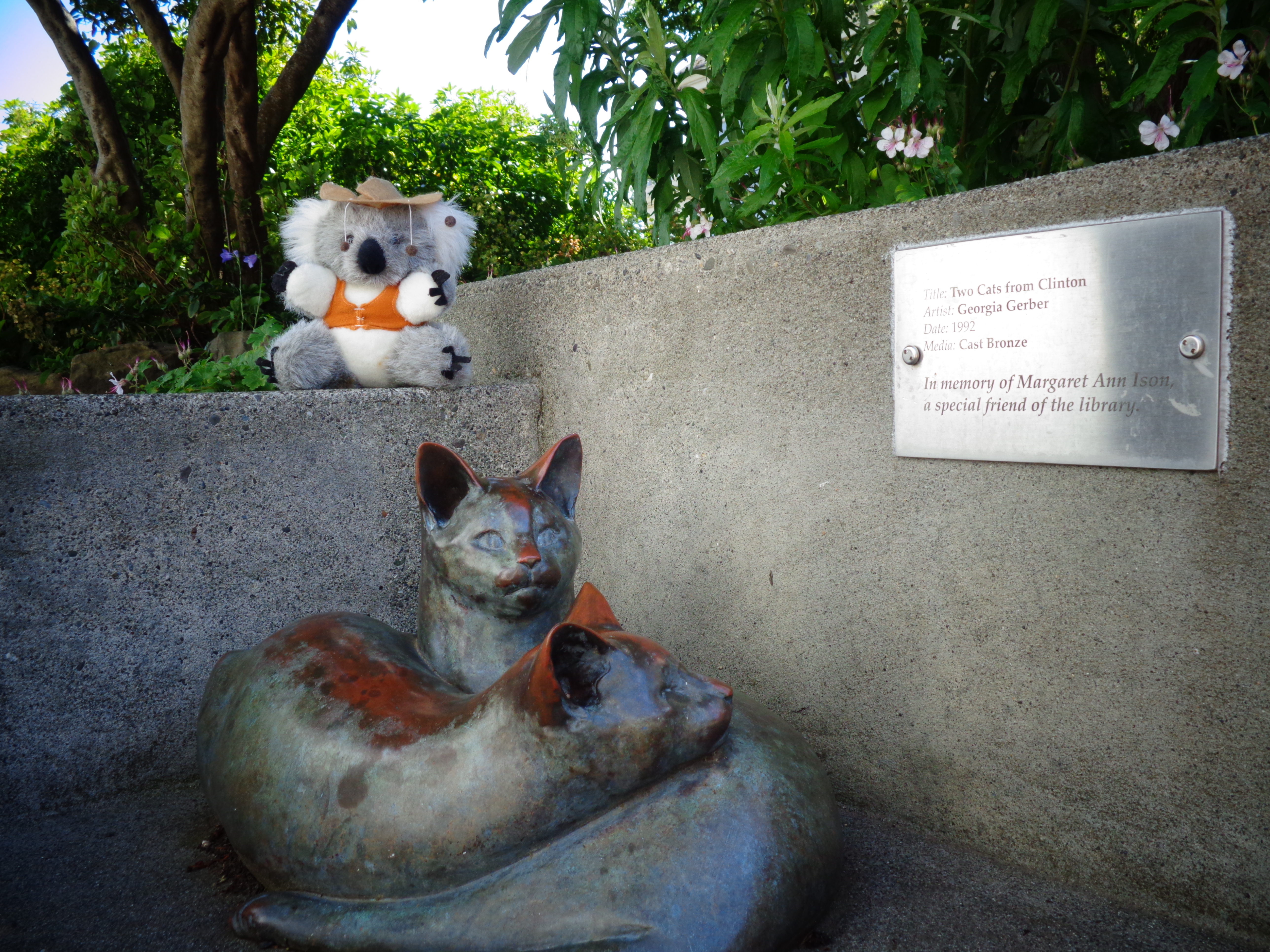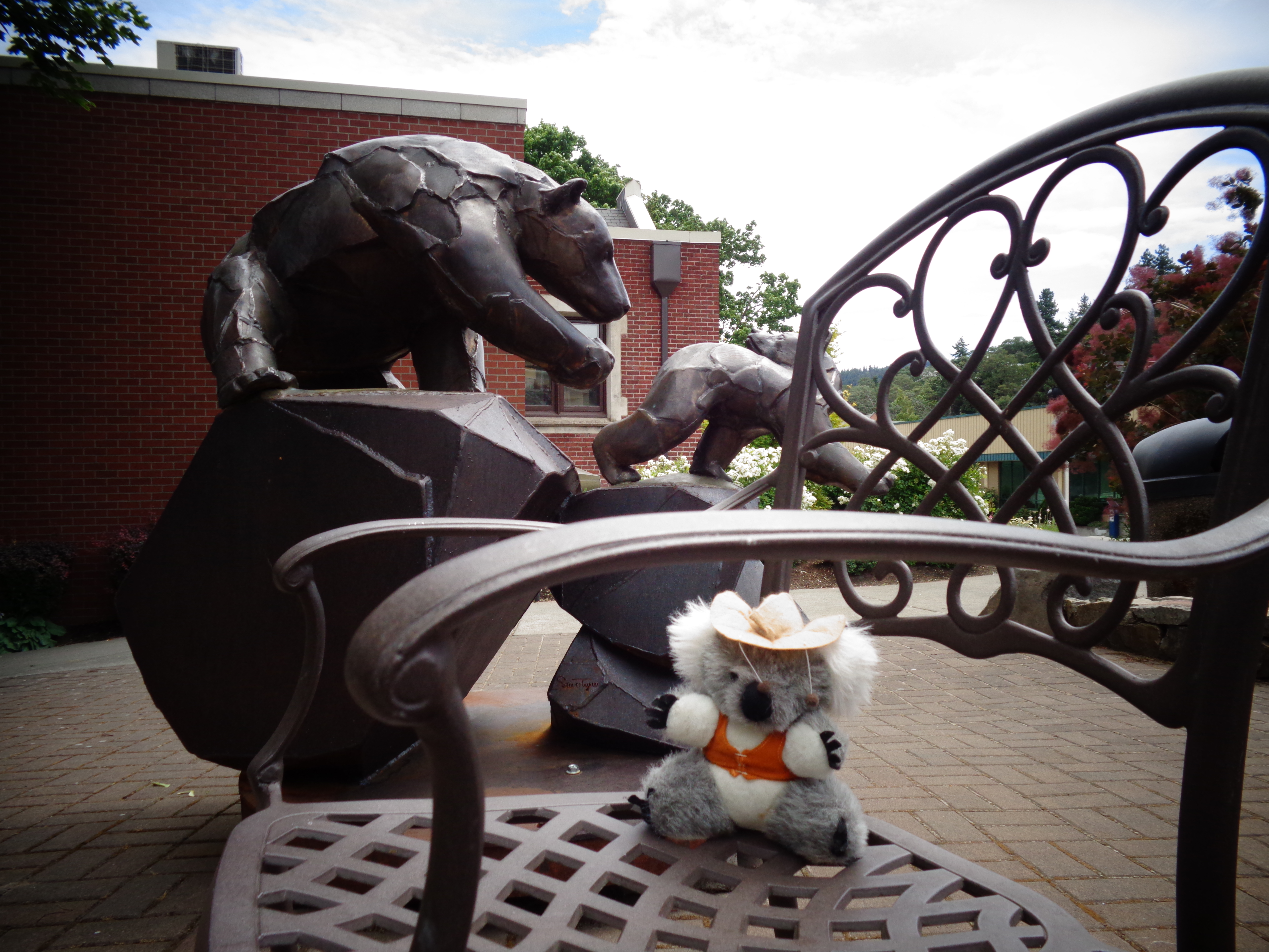 Pictured below: Adventure Bear waits patiently for his photo shoot outside the Hood River library.