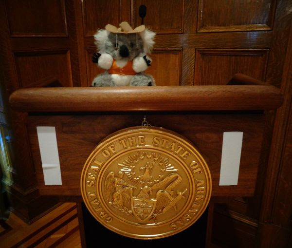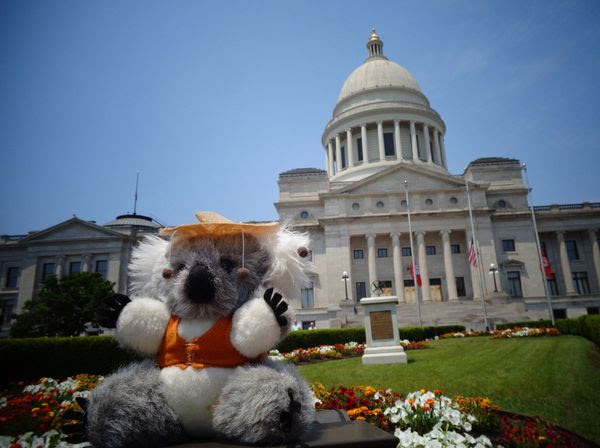 We’ve been through Little Rock a few times, but have never visited the capitol. Adventure Bear insisted we stop, and he even auditioned to be the governor’s spokesbear. Application pending.
