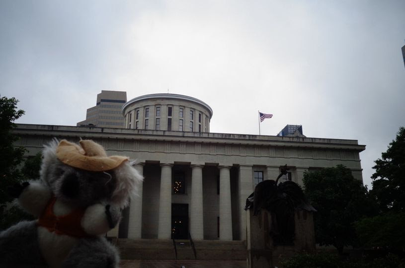 On the road, we dodged the rain and visited the Ohio capitol in Columbus. We’d never been in Ohio before, so that’s one more state covered. [Don’t miss BTS 2023 for the terrible working conditions related to this photo…]