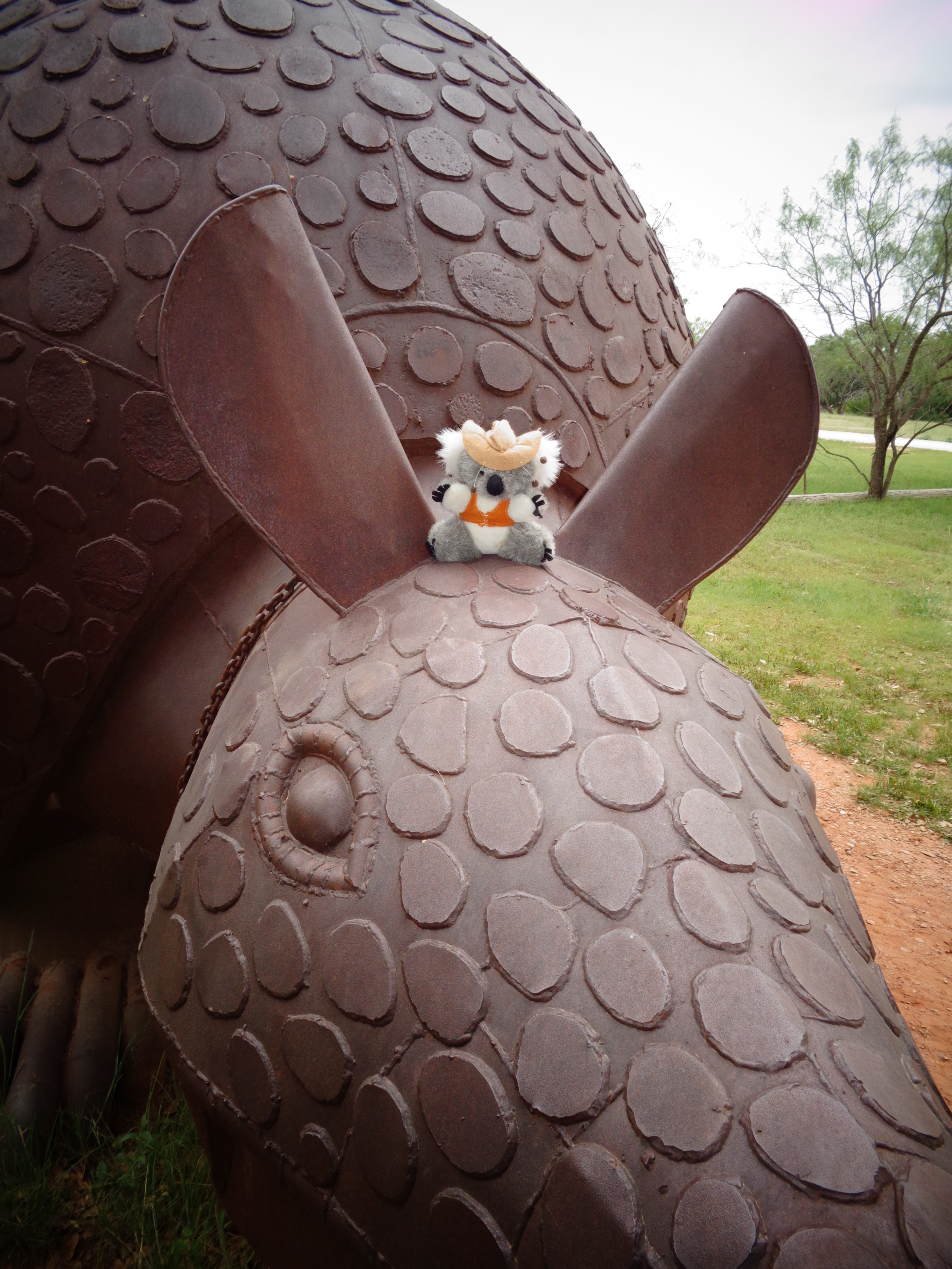 Adventure Bear was impressed with the giant armadillo at Perini’s Steakhouse in Buffalo Gap, TX. The burger and the visit with Jay’s dad were also excellent.