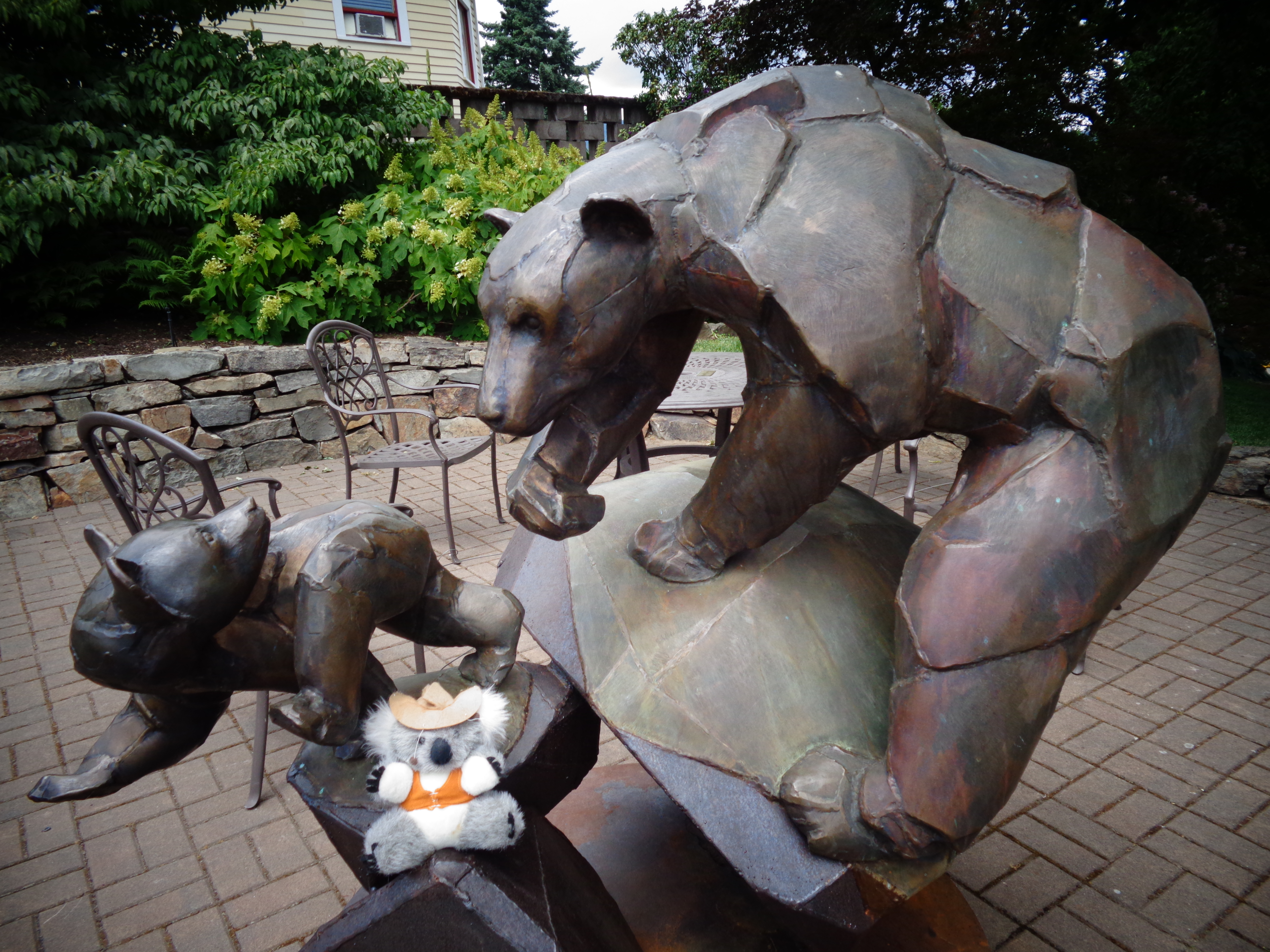 The Hood River library had great views, and a nice place to rest outside with other bears.