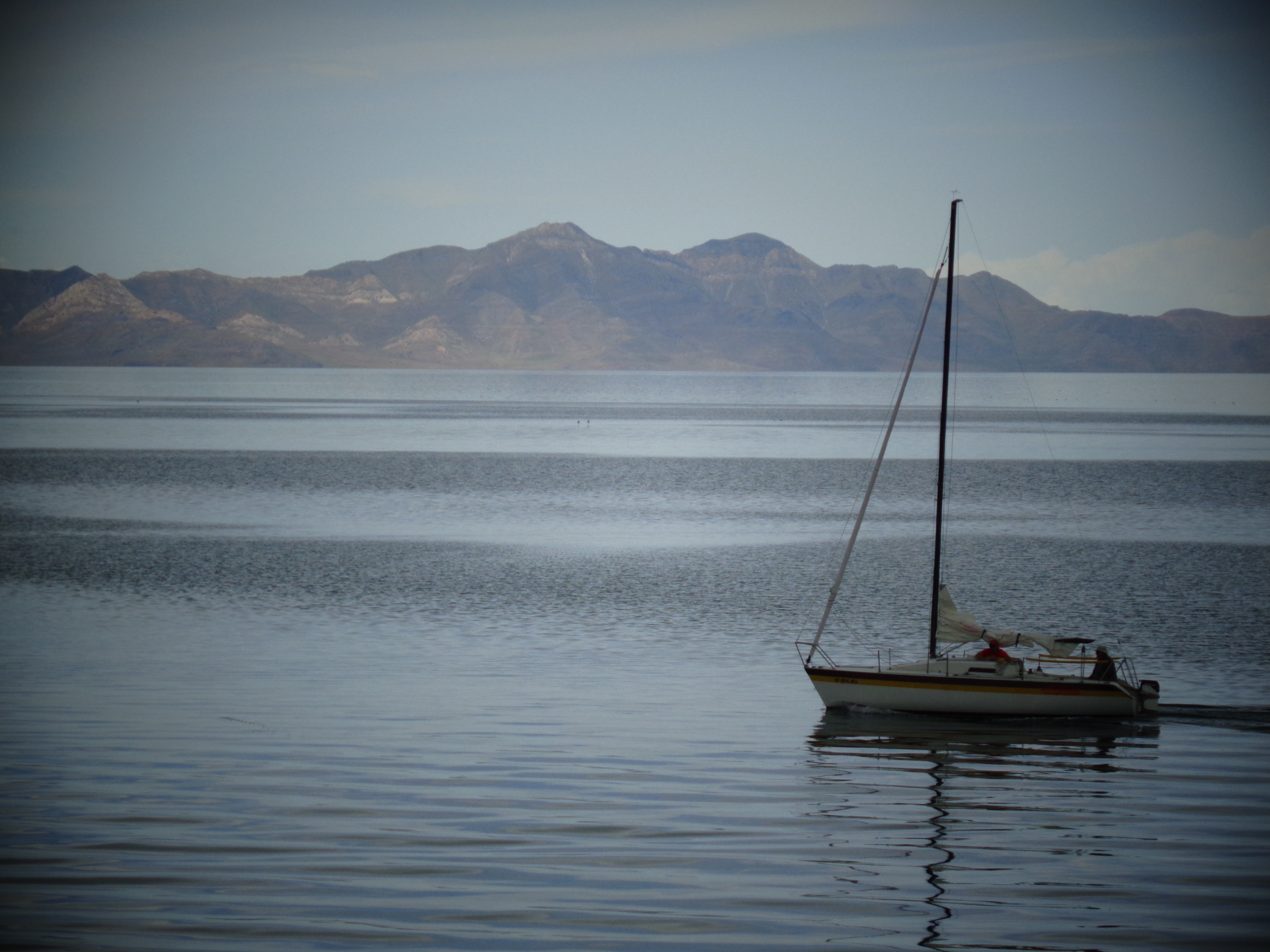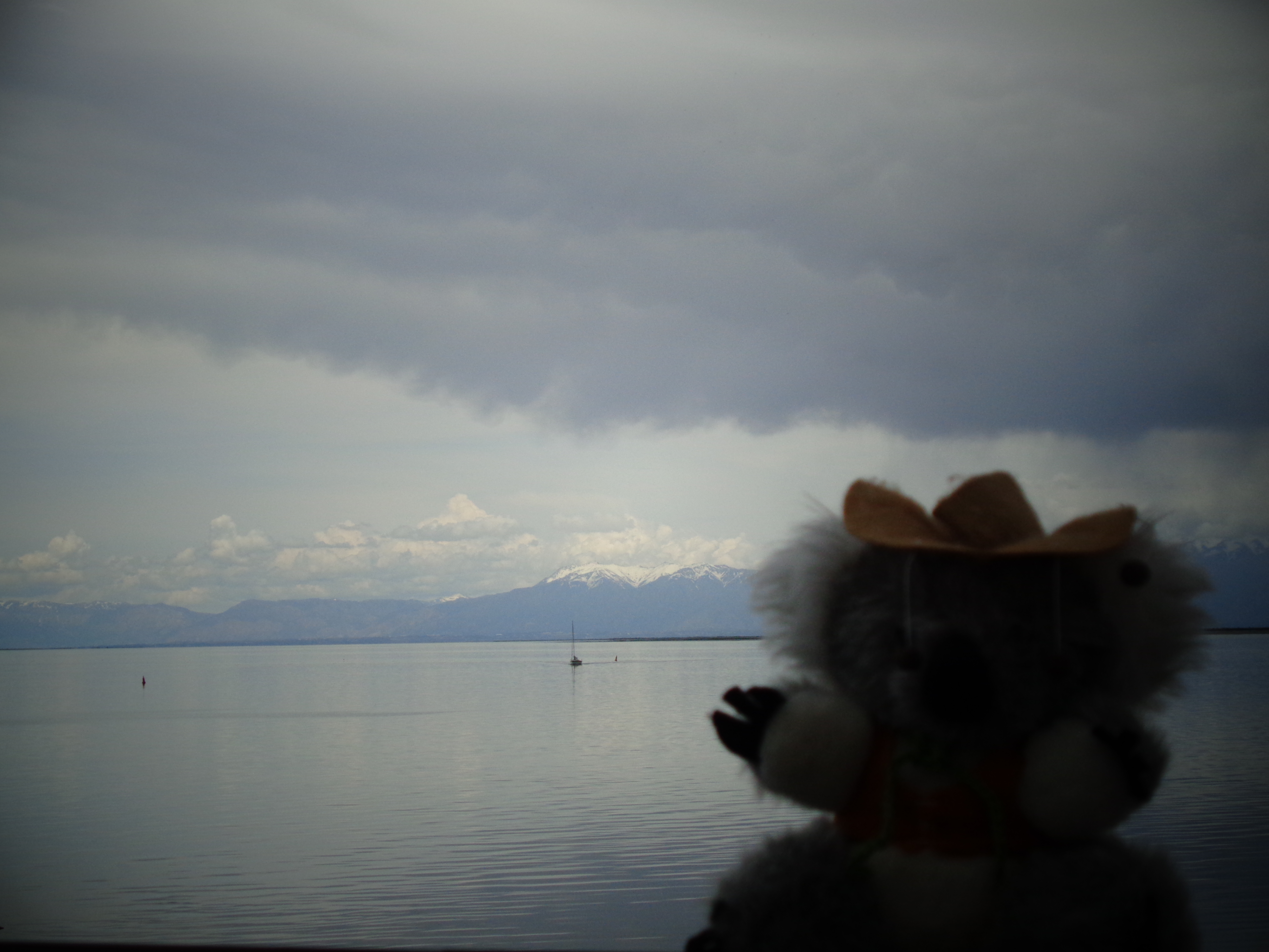 In Salt Lake City, we found another cool bookstore, and a very salty lake. Adventure Bear did not want to swim, but he liked that people take their boats out.